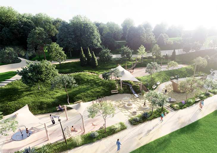 В рамките на първия етап от проекта ще бъде изградена и детска зона, която ще е разделена на 6 части. Съоръженията в нея ще бъдат групирани тематично, като едно от тях е конструирано така, че да се ползва и от деца с двигателни затруднения.