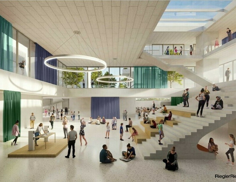 Припомняме, че идейният проект за МГ „Д-р Петър Берон“ е на австрийското архитектурно студио Riegler Riewe Architekten. Концепцията за новия кампус беше дарена на Община Варна от Фондация “МГ д-р Петър Берон – Варна”. Проектът включва и интериорна концепция.