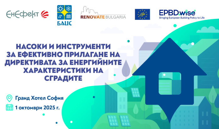 ЕнЕфект Ви организира конференция на тема „Насоки и инструменти за ефективно прилагане на Директивата за енергийните характеристики на сградите“. Форумът е посветен на предизвикателствата и възможностите пред прилагането на европейската сградна политика в България.