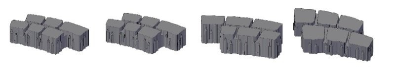 Специфичните елементи формират конфигурация от дъги, които позволяват оформяне на пространства, както в прави участъци, така и в зони с дъговидни и кръгови направления.